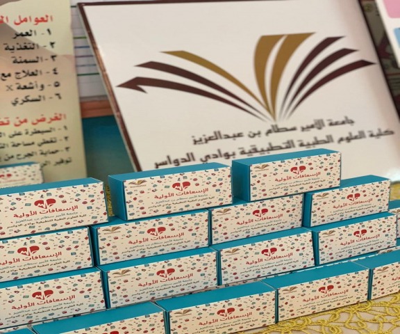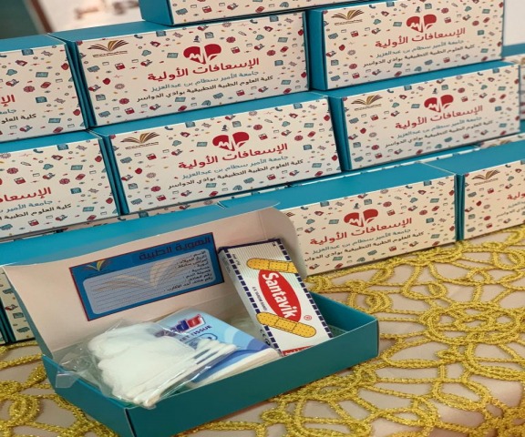 انطلاقاً من التعاون المشترك بين كلية العلوم الطبية التطبيقية بوادي الدواسر وجمعية إنسان لرعاية الايتام وبرعاية كريمة من سعادة الدكتور ماجد الشريدة سلمه الله عقدت فعالية لليوم العالمي للإسعافات الأولية وذلك يوم الأحد الموافق ١٤٤١/١/١٦هـ في نادي ابتدائية الحي بالمقابل وقد حضر الفعالية أمهات الطالبات ومعلمات المدرسة وقد قامت الدكتورة ماجدة الجميل مساعدة العميد لشؤون الطلاب بشرح مفصل عن الإصابة بالحروق وكيفية الوقاية وتقديم الإسعافات السريعة عند حدوث حريق أو الإصابة بها مع عرض فيديو يقدم أسباب الحروق ومصادرها وكيفية التدخل السريع ثم قدمت الدكتورة سحر عبدالمحسن شرح عن أهداف القيام بالإسعافات ومواصفات المسعف ومحتويات شنطة الإسعافات الأولية وأيضا عرضت موضوع الكسور وكيفية إسعاف المصاب المكسور ثم تلتها الدكتورة عطيات محمد حسن وقامت بعرض موضوع الإنعاش القلبي الرئوي وكيفية القيام بإسعاف المريض الذي يحتاج لإنعاش القلب والتنفس ثم عرضت الدكتورة مجيدة عبدالعاطي محاضرة عن النزيف وكيفية تقديم العناية الفورية عند حدوث النزيف وقد قامت مديرة الإدارة بالكلية الأستاذة رنا السويس بإعداد ركن خاص عن الإسعافات الآولية واختتمت الفعالية بتقديم نماذج من شنط الإسعافات الأولية للحضور للحرص على توفير شنطة إسعافات أولية في المنزل أو مكان العمل متمنين للجميع السلامة و العافية