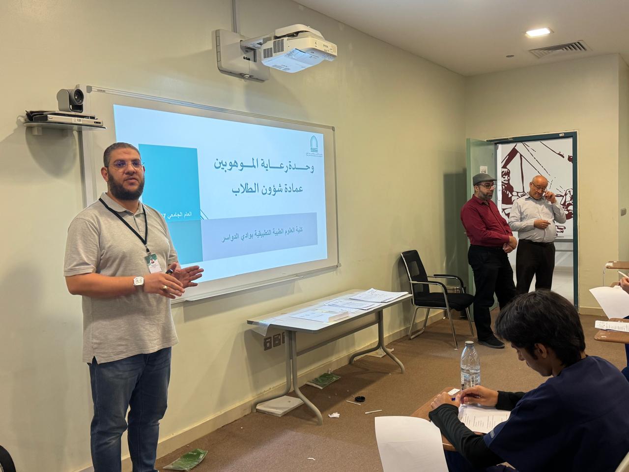 نظّمت كلية العلوم الطبية التطبيقية بوادي الدواسر، تحت إشراف سعادة عميد الكلية المكلف الدكتور مبارك بن عبدالله الدوسري، لقاءً تعريفيًا لطلاب قسم علوم التمريض حول وحدة رعاية الموهوبين، وذلك يوم الخميس الموافق 1/5/1447هـ، بحضور سعادة رئيس قسم علوم التمريض الدكتور مرضي بن عبدالله الدوسري، وعدد من أعضاء هيئة التدريس.