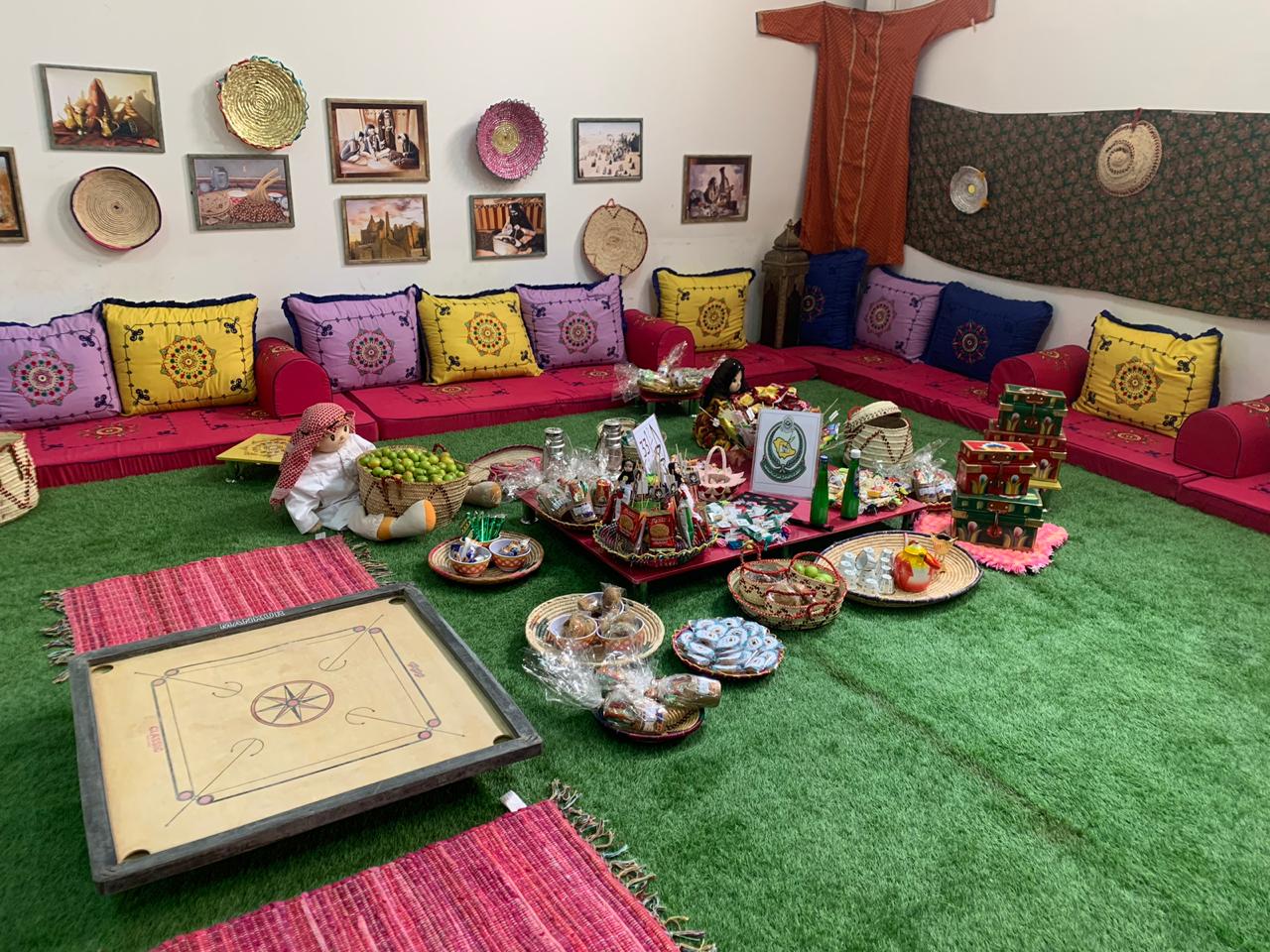 تزامنا مع انطلاق مهرجان الجنادرية ٣٣ اقامت وحدة العمل الطلابى وخدمة المجتمع يوم الاثنين الموافق ٢٢/٥/١٤٤٠ ركن متميز يعكس صورة لتراث وحضارة وثقافة المجتمع السعودى هدف الى تعريف الطالبات ببعض من هذا التراث العريق حيث تضمن الركن أدوات وصور تراثية، ملابس شعبية، وبعض الاكسسوارات القديمة بالإضافة الى منشورات أعدتها طالبات المجلس الطلابى عن التراث السعودى القديم وقد لاقى الركن استحسان الجميع من أعضاء هيئة التدريس، موظفات وطالبات.