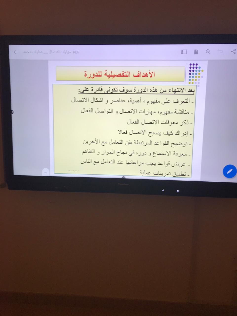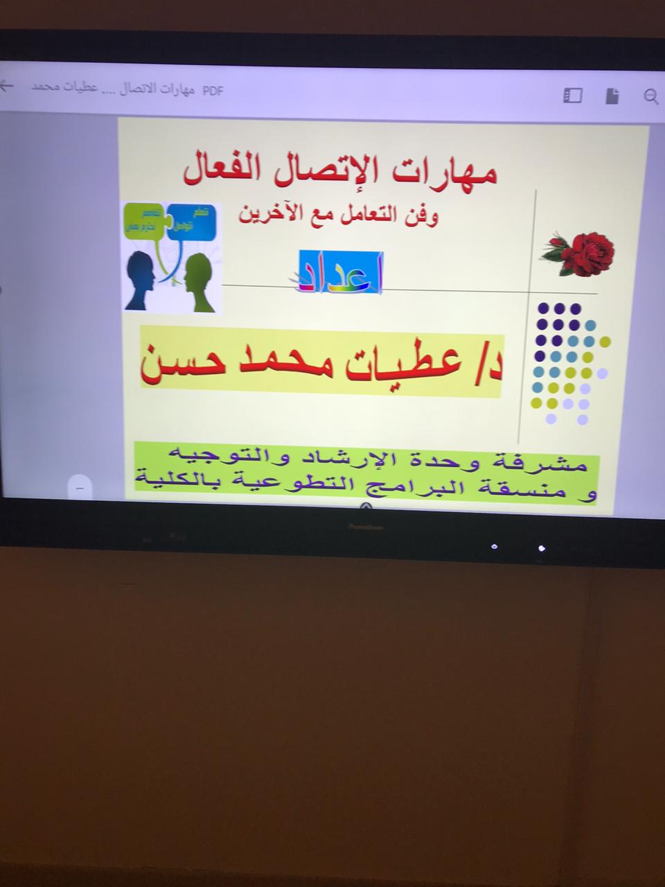 بفضل الله و بكل الجد والاجتهاد نبدأ الفصل الدراسي الثاني في كلية العلوم الطبية التطبيقية بوادي الدواسر. حيث أقامت اليوم الاثنين الموافق ٢/٦/١٤٤ وحدة التوجيه والإرشاد الطلابي بالتعاون مع وحدة العمل الطلابي ممثلة في البرامج التطوعية بالكلية دورة تدريبية للطالبات تحت عنوان "مهارات الاتصال الفعال و فن التعامل مع الآخرين" و ذلك في تمام الساعة ١٢ ظ بقاعة دراسية C10 قدمتها دكتورة عطيات محمد حسن مشرفة وحدة الارشاد والتوجيه الطلابي ومنسق البرامج التطوعية بالكلية. وقد شرفت الدورة بحضور سعادة الدكتورة/ ماجدة الجميل مساعدة العميد لشؤون الطالبات، سعادة الدكتورة/هيام احمد مشرفة وحدة العمل الطلابي، سعادة الدكتورة/ مجيدة عبد العاصي مشرفة وحدة الخريجين بالكلية والطالبات بالكلية. وقد هدفت الدورة الي إكساب الطالبات مهارات الاتصال الفعال وفن التعامل مع الآخرين. ذلك بالإضافة الي معرفة مفهوم الاتصال الفعال، معوقاته، مهارات الاتصال والتواصل الفعال، قواعد يجب مراعتها عند التعامل مع الناس، طرق إعطاء النصيحة، عمل تمرينات للتطبيق العملي للدورة. وقد لاقت الدورة اهتمام وترحيب من الحضور.