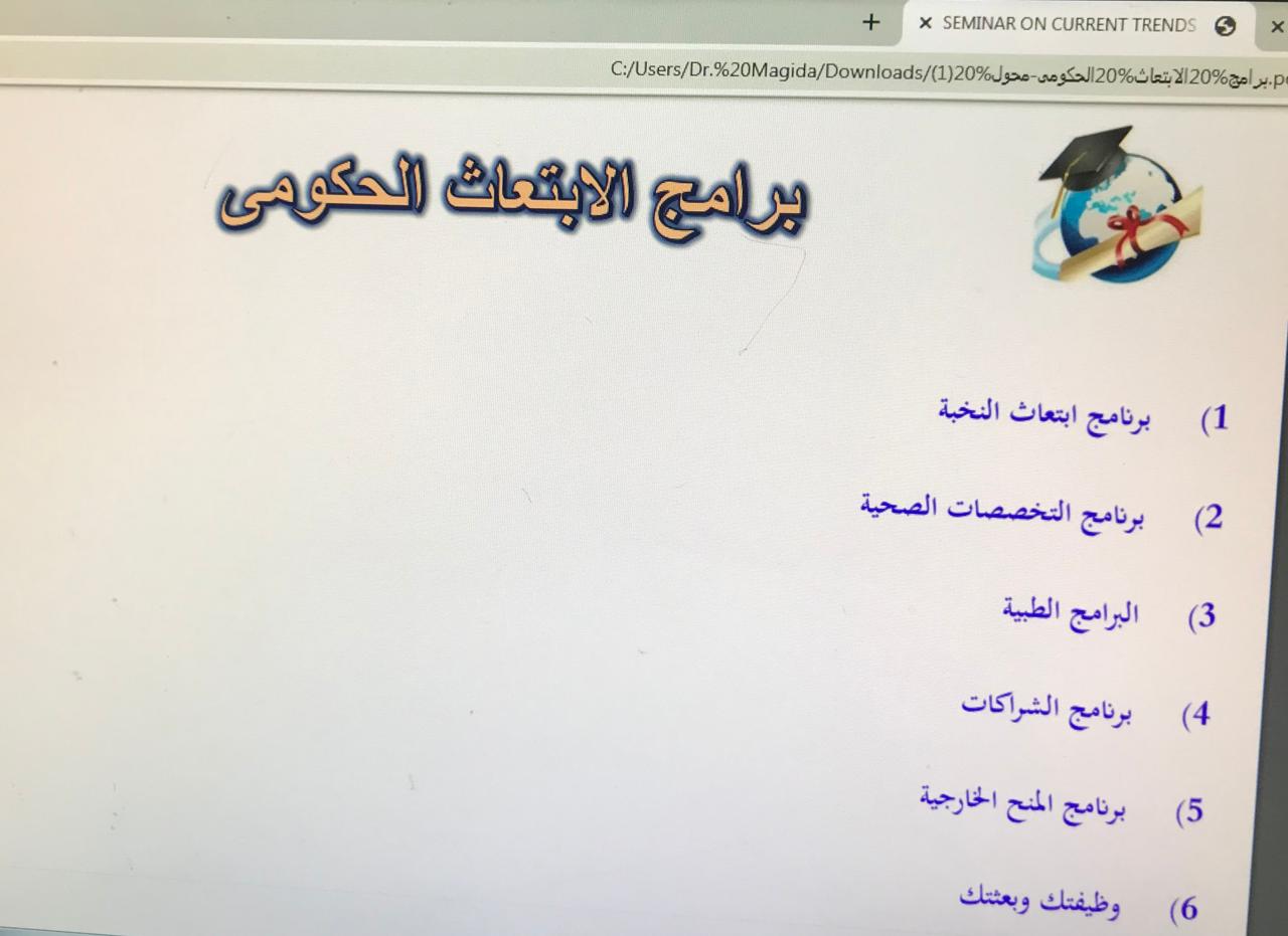 تنفيذًا لمتطلبات الجامعة من تفعيل دور المرشد المهني بالكليات أقامت وحدة الخريجات (الإرشاد المهني) اليوم الخميس الموافق ١٢/٦/١٤٤١ تمام الساعة الثانية عشر ظهرًا بقاعة دراسية بالكلية ورشة عمل بعنوان (التعريف ببرامج الابتعاث الحكومي) برنامج خادم الحرميين الشريفين وتهدف هذه الورشة إلي التعريف بالبرنامج ومعرفة أهدافه وشروطه وكيفية التسجيل وصفات الطالبة المتقدمة .كما قدمت بعض النصائح للطالبات لمن يرغبن بالالتحاق بالبرنامج وضرورة استيفاء جميع المتطلبات قبل البدء في التسجيل بالبرنامج. ولقت الورشة استحسان وترحيب من الحضور.