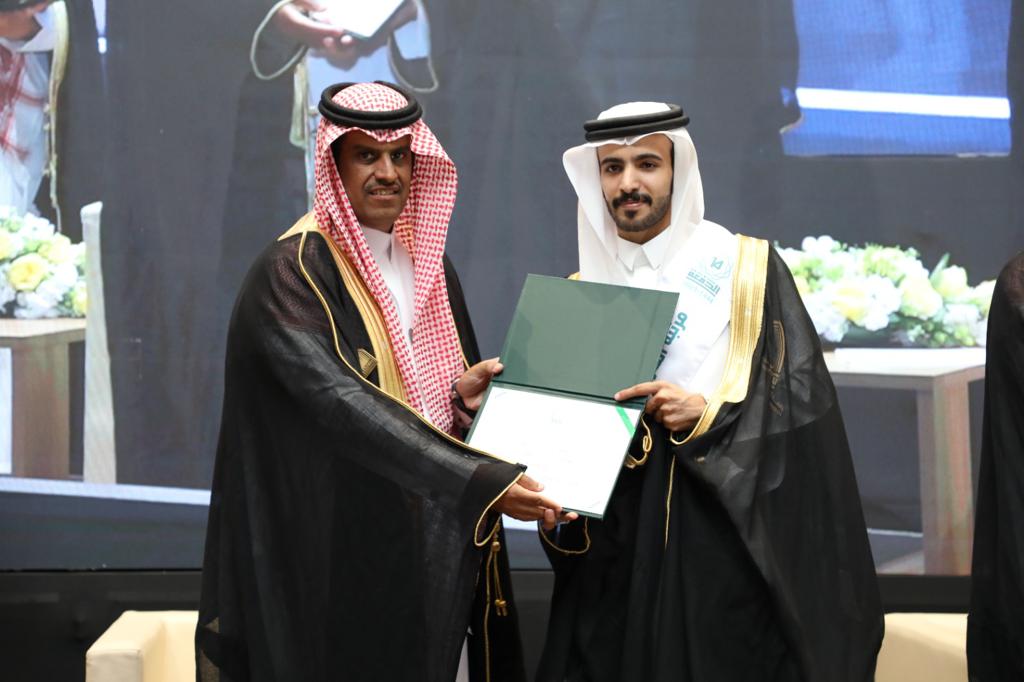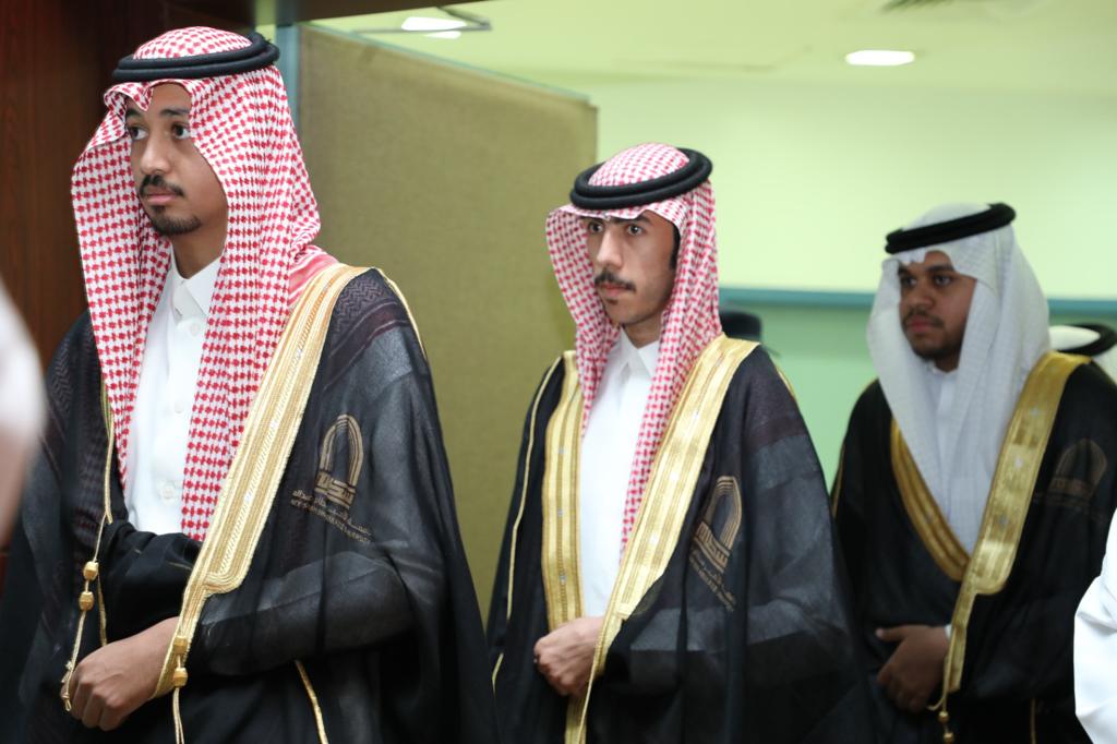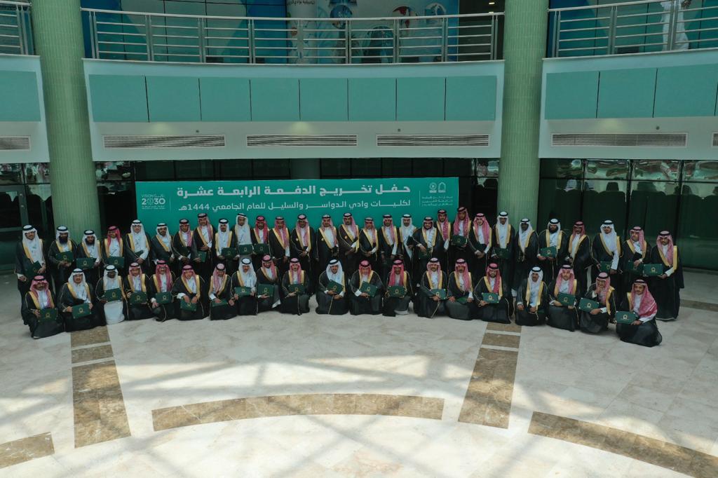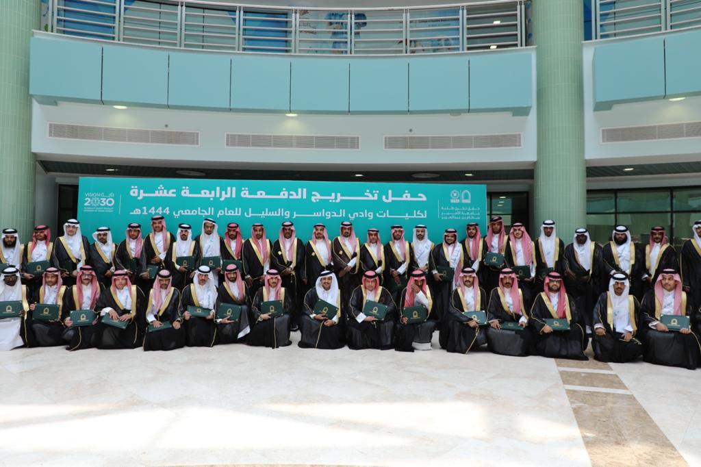 Under the patronage of His Excellency the President of Prince Sattam bin Abdulaziz University, Prof. Dr. Abdulrahman bin Hilal Al-Talhi. Today, the Vice President for Educational and Academic Affairs, Prof. Dr. Mashari bin Ayad Al-Osaimi, witnessed the graduation ceremony of the fourteenth batch of 241 graduate students from the university's faculties in Wadi Al-Dawasir and Al-Sulayyil governorates, at the Colleges Complex theater in Wadi Al-Dawasir Governorate, and in the presence of both the Governor of Wadi Al-Dawasir Fahd bin Abdullah Al-Masoud, and the Deputy Governor of Al-Sulayyil Hamdan bin Faleh Al-Murshidi. Subsequently, the university vice president delivered a speech in which he commended the wise leadership's great interest in scientific fields at all levels, congratulating the graduates and wishing them success in their future career. Then the graduate Fahd bin Nasher Al Hadla gave a speech on behalf of the graduates. At the end of the ceremony, the university vice president honored the graduate students who obtained first and second honors, and then took memorial photos.